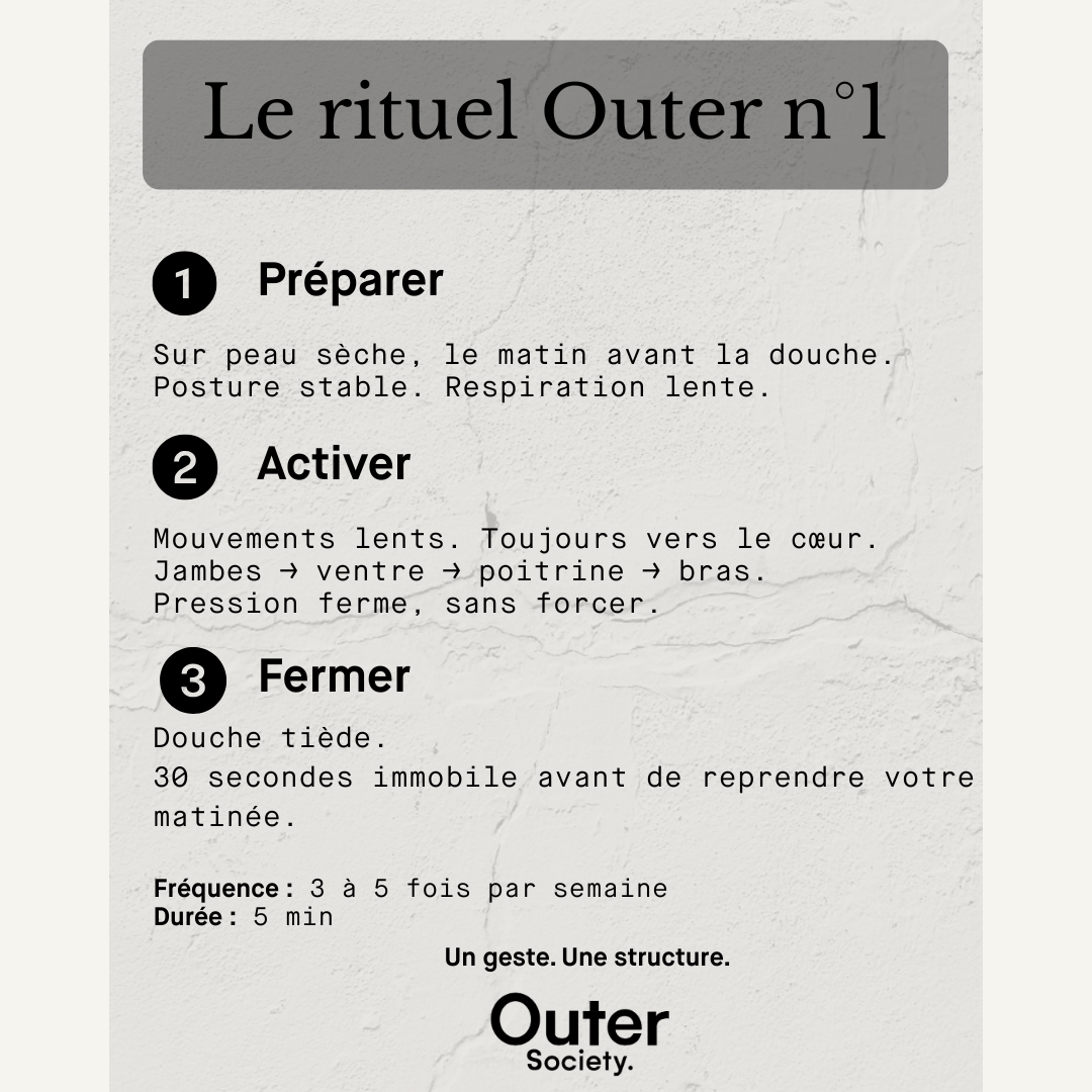 La brosse de massage à sec Outer transforme un simple brossage en un rituel clair, structurant et intentionnel.